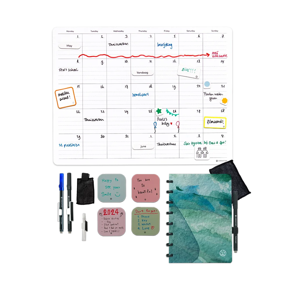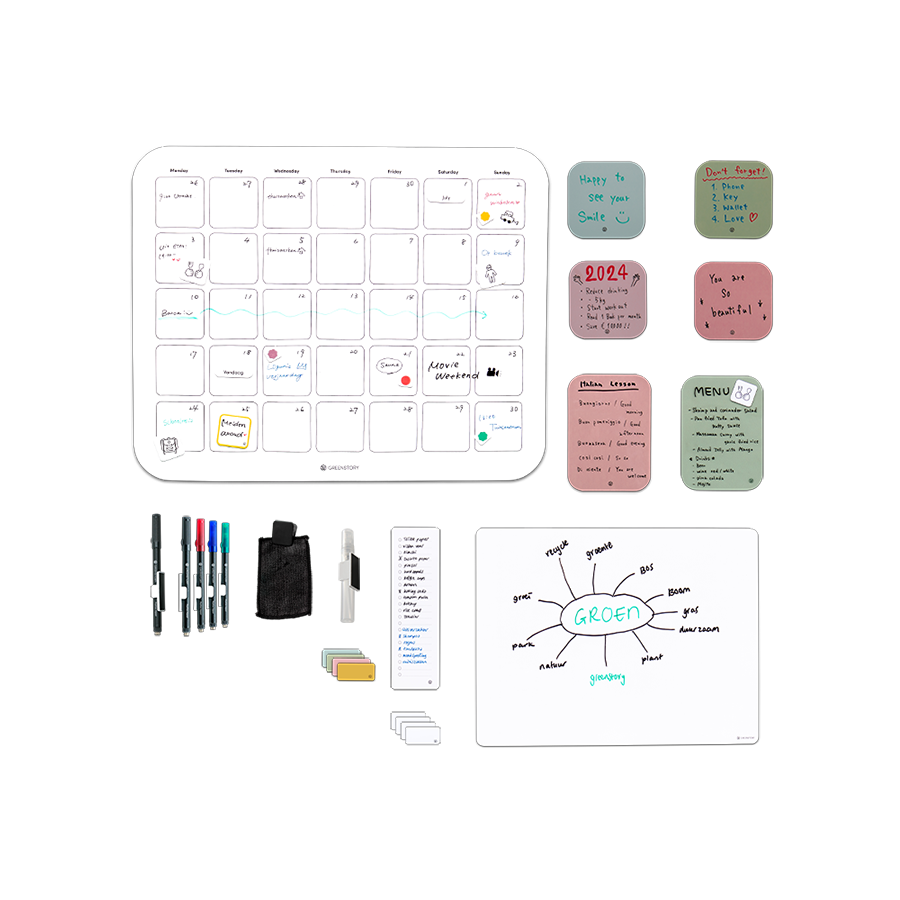 Ontdek de veelzijdigheid van GreenStory’s sticky whiteboards en geef een unieke draai aan je creativiteit en manier van organiseren. Plak ze op verschillende plekken in huis voor brainstormsessies, flexibele planning, inspirerende moodboards en interactief leren met de kleintjes. Gebruik ze als communicatiehulpmiddelen om berichtjes en reminders in stijl en persoonlijk over te brengen. Met deze herbruikbare whiteboards creëer je een milieuvriendelijkere levensstijl en vermijd je papiervervuiling. Laat je verbeelding de vrije loop, wees georganiseerd, verbonden, en promoot duurzaamheid met GreenStory’s sticky whiteboards.